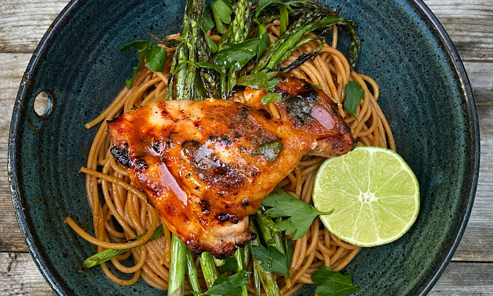 Rice noodles, grilled hormone-free chicken, Small Axe Farm mixed greens, house tangy peanut sauce, sliced organic cucumber, roasted peanuts, organic scallion, lime -
