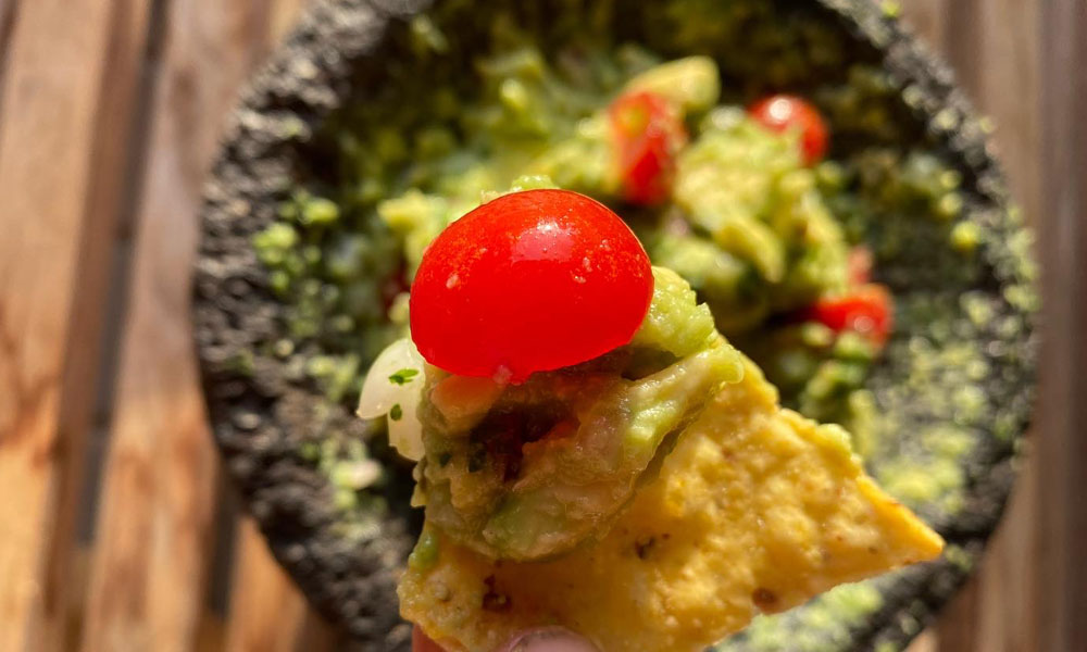 Smashed avocado, organic onion, lime, organic cilantro, organic cherry tomato, corn tortilla chips -