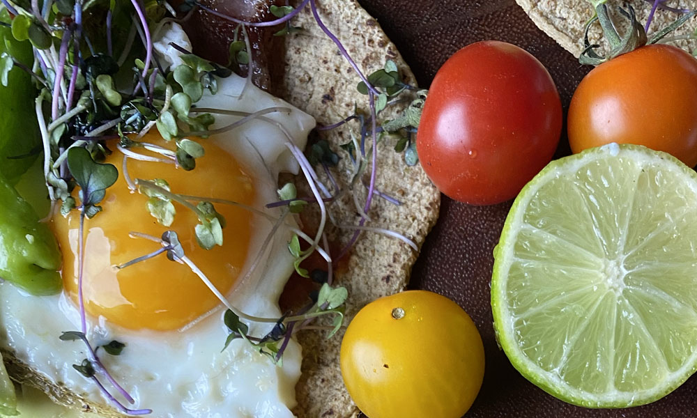 Smashed avocado, sunnyside local egg, Small Axe Farm micro greens, crushed red pepper flakes, EVOO, grilled local sourdough -